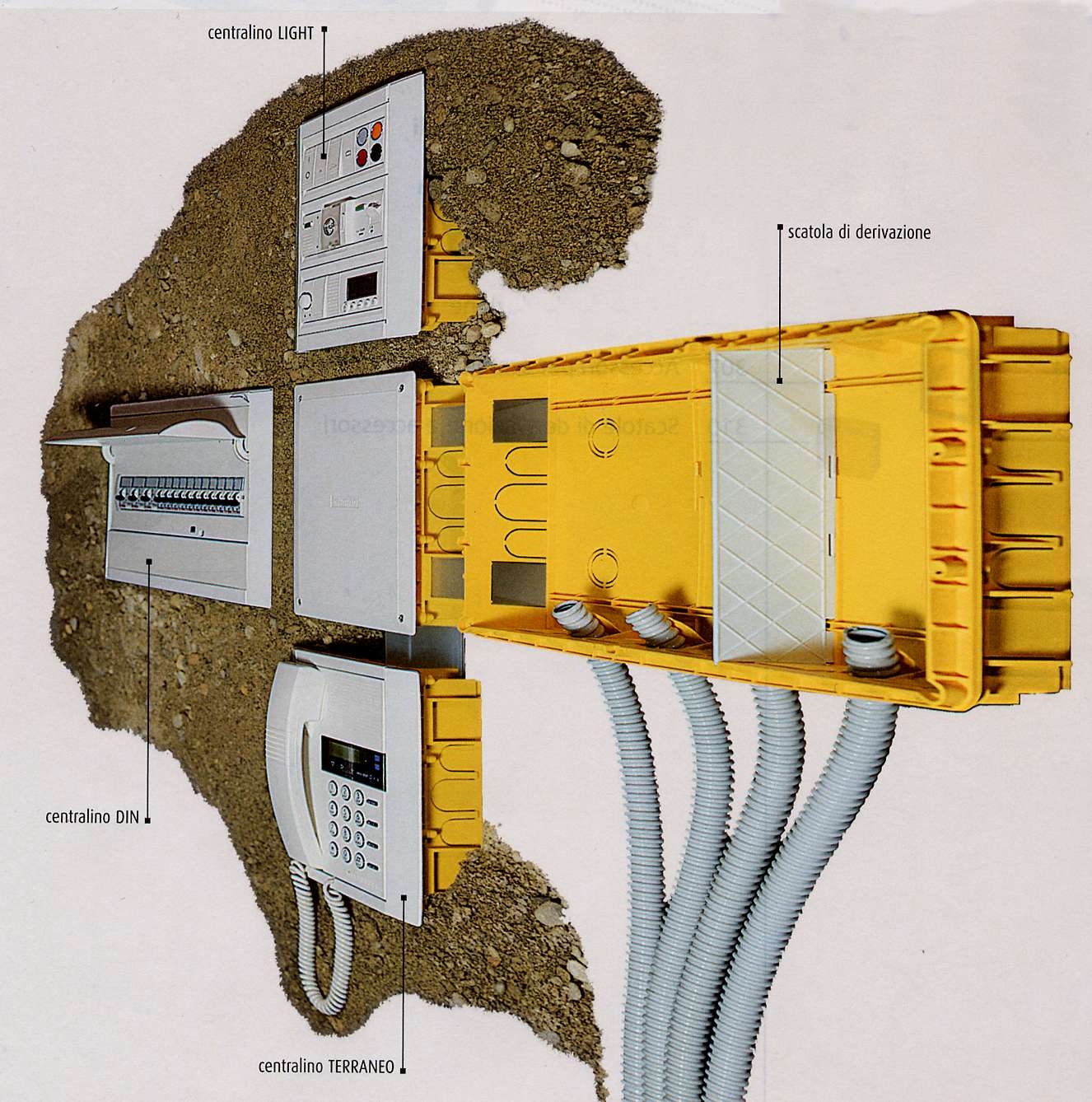 Impianto da incasso con tubazioni e scatole completamente